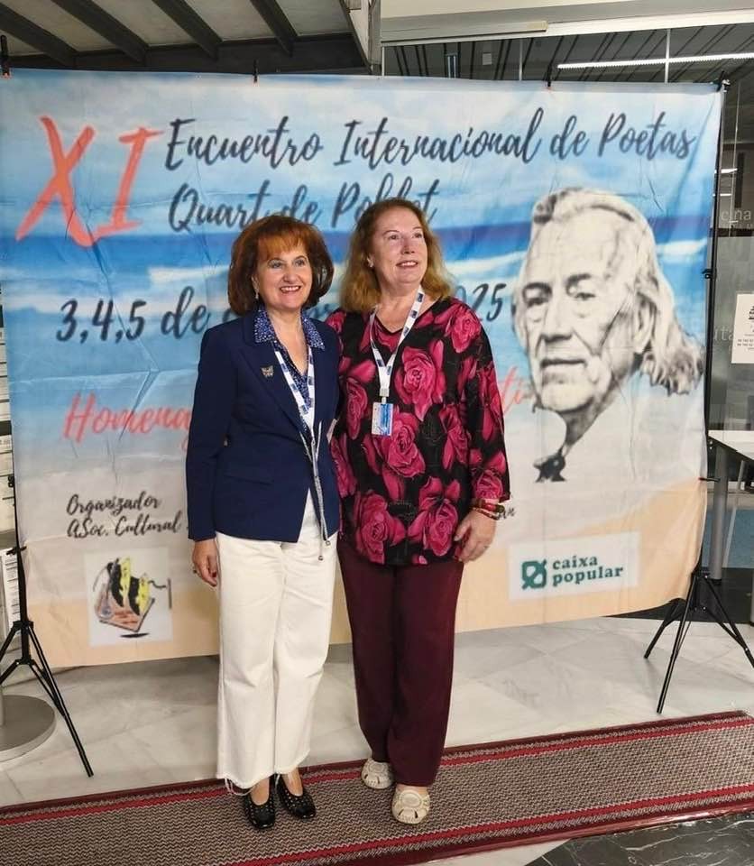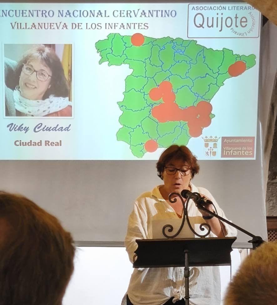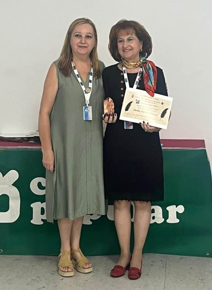 J.R. de Torres entrega premio de poesía a Nieves Viesca.
