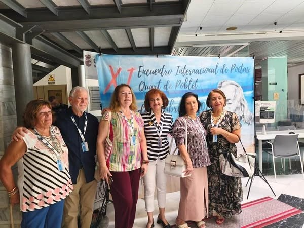 Con poetas asistentes al acto Joaquín De LaBuelga, Ana García de Loza, Agustín Alonso Bis...