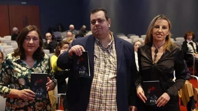 Con poetas asistentes al acto Joaquín De LaBuelga, Ana García de Loza, Agustín Alonso Bis...